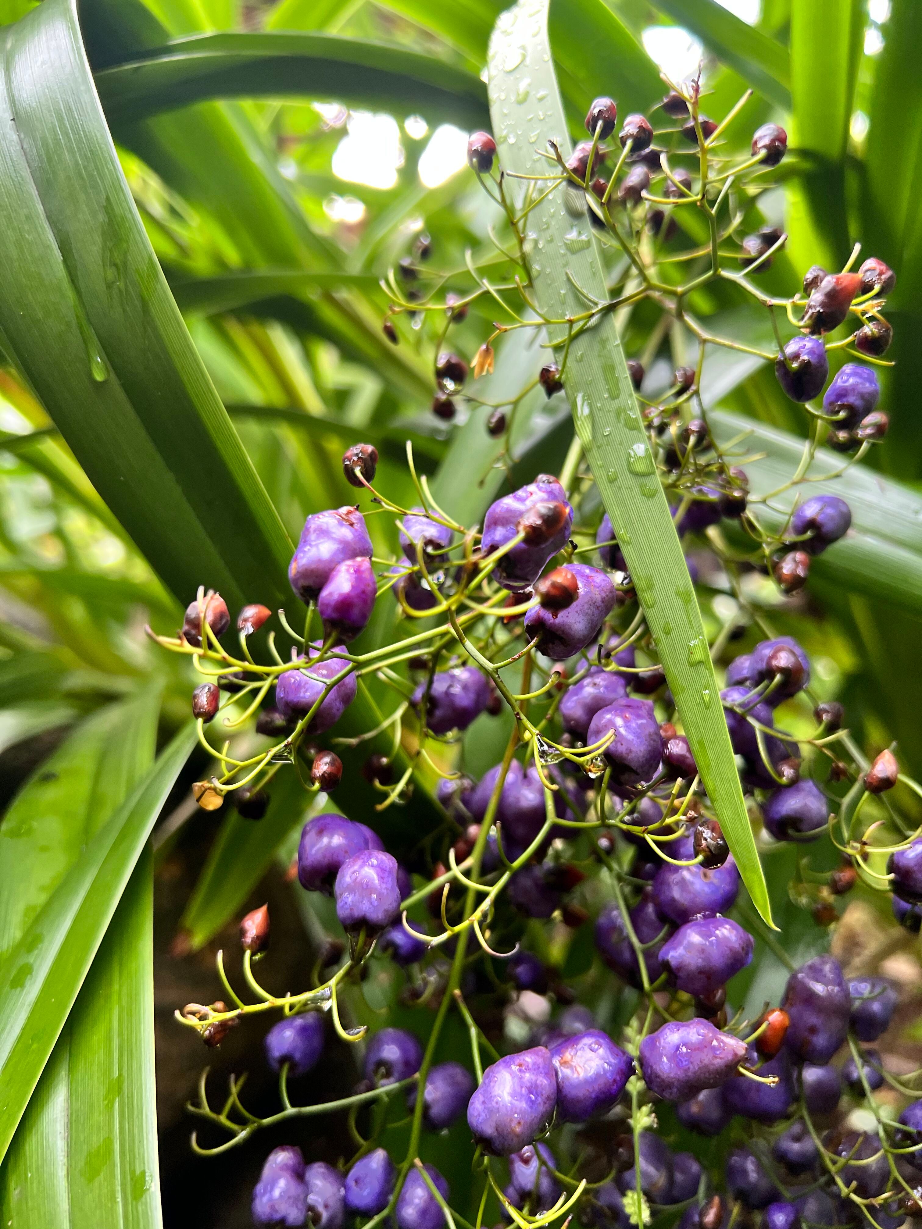 ʻUkiʻuki is a native lily with striking blue berries and fibrous leaves used for dye and cordage.
